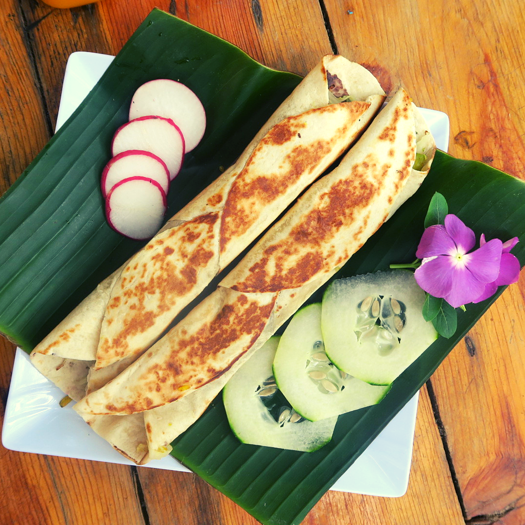 Burrito with chorizo, Oaxaca Cheese, Red Pepper & Spicy mango salsa